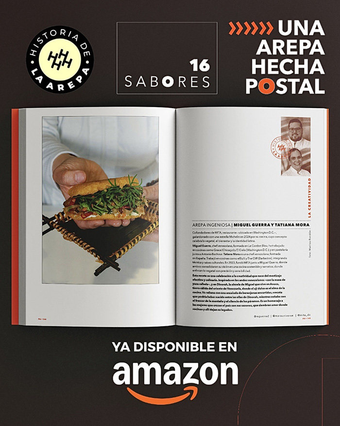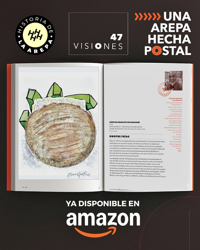 Este proyecto, que con sus ya 5 libros ha sido reconocido con más de 15 premios nacionales e internacionales, celebra la riqueza cultural y el talento nacional. Reuniendo la visión de 48 artistas y 16 chefs, quienes colaboraron para crear un puente que nos conecta, sin importar la distancia, a través de la arepa. Cada pieza es una huella de lo que cada uno aporta y, al mismo tiempo, una impronta de lo que soñamos y construimos juntos como país.