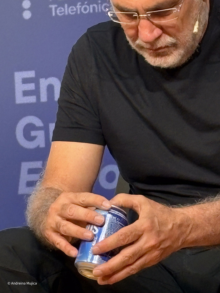 A pesar del calor para llegar al punto de encuentro, puntual y con la lengua de cobarta, resultó una tarde memorable en la Fundación Telefónica. El escritor mexicano, guionista de películas fabulosas, el hombre en cuestión es Guillermo Arriaga, viene de publicar su última novela casualmente titulada El Hombre. Una sala repleta de seguidores y de amigos, con uno que otro periodista que logró entrar por la buena voluntad de los organizadores, estaba acompañado por la periodista Marta Fernández y el escritor Manuel Vilas.