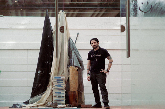La muestra “Entre telas” es una propuesta que, bajo la curaduría de Alberto Asprino, pone el foco en la experimentación y el lenguaje de las nuevas generaciones de artistas venezolanos, y está conformada por una selección de obras de los artistas jóvenes Ángel D Leiva, Aidyn Vásquez y Mago, donde estos creadores exploran las posibilidades plásticas y conceptuales del soporte textil, logrando que la tela trascienda su función tradicional de receptáculo para convertirse en el eje narrativo y estructural de cada pieza.