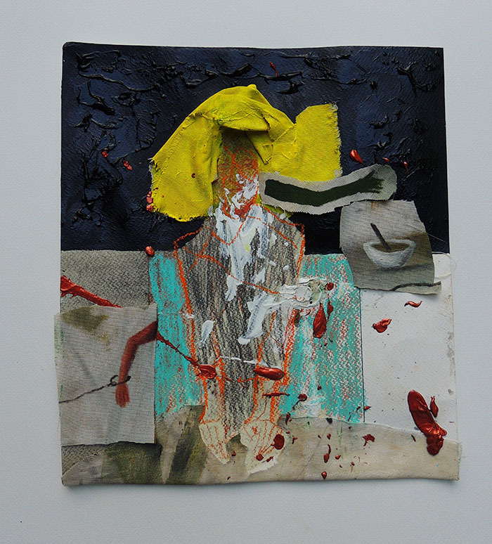 Este eje lo completa Mujer con gorro amarillo, que en conjunto a la primera, consideramos que contienen una potencia y particularidad tal que ameritan su mención especial, esta última nos ilumina en la multitud de ocasiones que en la historia del arte se ha retratado a la mujer con algún accesorio coronando su cabeza, desde La Joven de la perla (1667), propia de la tradición barroca neerlandesa de Vermeer, pasando por Joven campesina con un sombrero de paja amarillo (1890) de Van Gogh, hasta obras más cercanas cronológica y estilísticamente como Busto de mujer (1943) de Picasso, quien desde la vanguardia cubista logró fragmentar la imagen, renunciando a la verosimilitud de la representación mimética, para abrir un camino que significó una verdadera trasformación estética, que en la contemporaneidad, Galue profundiza hasta lograr transitar de manera orgánica una fase abstracta dentro de una obra marcada por la figuración.