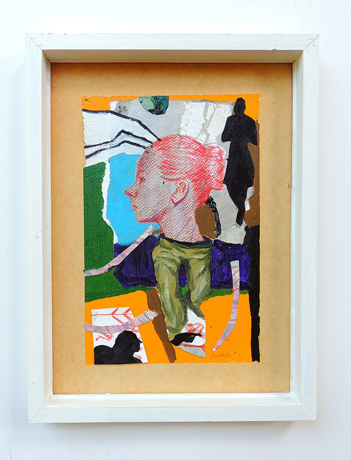 El trabajo plástico de Galue es incansable, como hemos afirmado, él logra dominar un impulso creativo que abunda en una búsqueda ontológica, en este artista, la pintura, el dibujo y el híbrido entre ambos funciona como camino introspectivo para analizar no solo lo propio del ser, sino aquello que compartimos como humanidad, y justamente de esa hibridación tanto material (pintura, dibujo= collage) como conceptual (la mirada al ser que se transforma), proponemos a seres en metamorfosis como la segunda posibilidad de abordar la obra en sala.